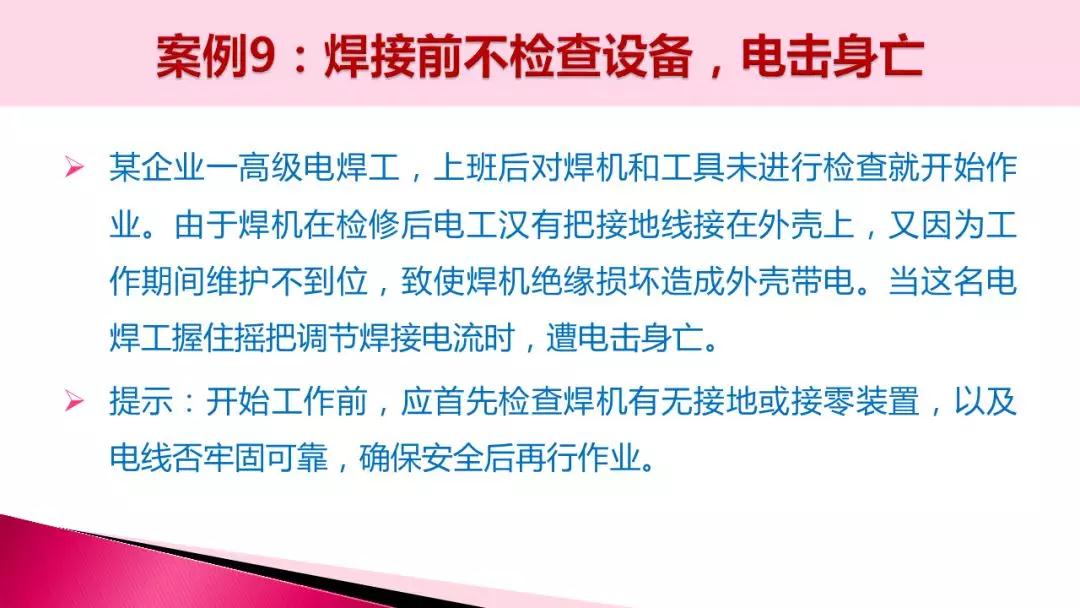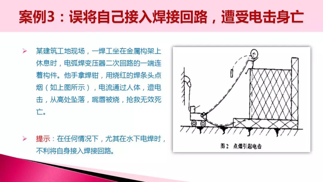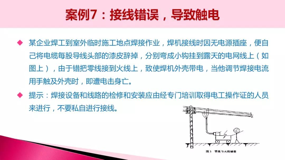 焊工不熟悉相關(guān)的電氣安全知識(shí),錯(cuò)將零線接到火線上,導(dǎo)致焊機(jī)外殼帶電,導(dǎo)致觸電身亡。