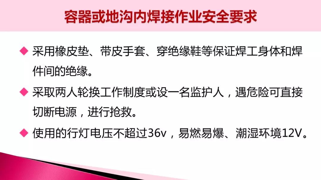 (2)艙內(nèi)作業(yè)時(shí)一定要有監(jiān)護(hù)人,隨時(shí)注意焊工工作狀態(tài),遇到危險(xiǎn)證照,立即拉閘救人