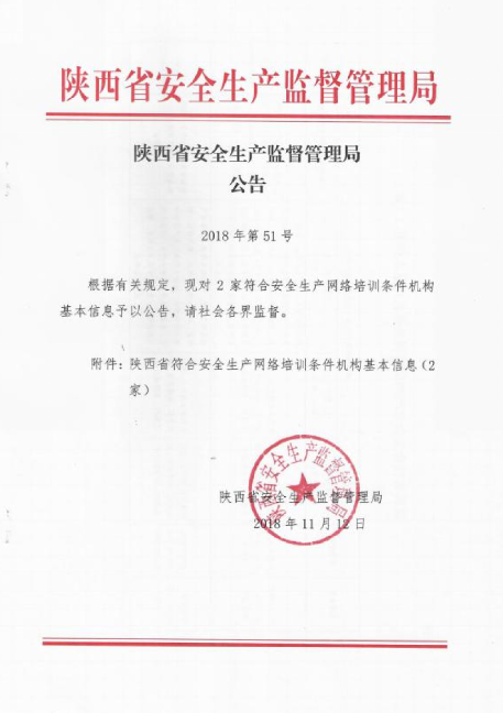 陜西省安全生產(chǎn)監(jiān)督管理局公告2018年第51號(hào)