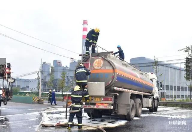 12時(shí)30分,油罐車剩余油料倒灌完畢,事故車輛在一輛消防車的護(hù)送下安全駛離現(xiàn)場。